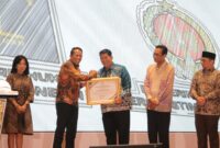 Foto: Menteri Hukum RI Supratman Andi Agtas menyerahkan penghargaan kepada Bupati Kulon Progo Agung Setyawan atas capaian pembentukan Pos Bantuan Hukum (Posbankum) 100 persen…