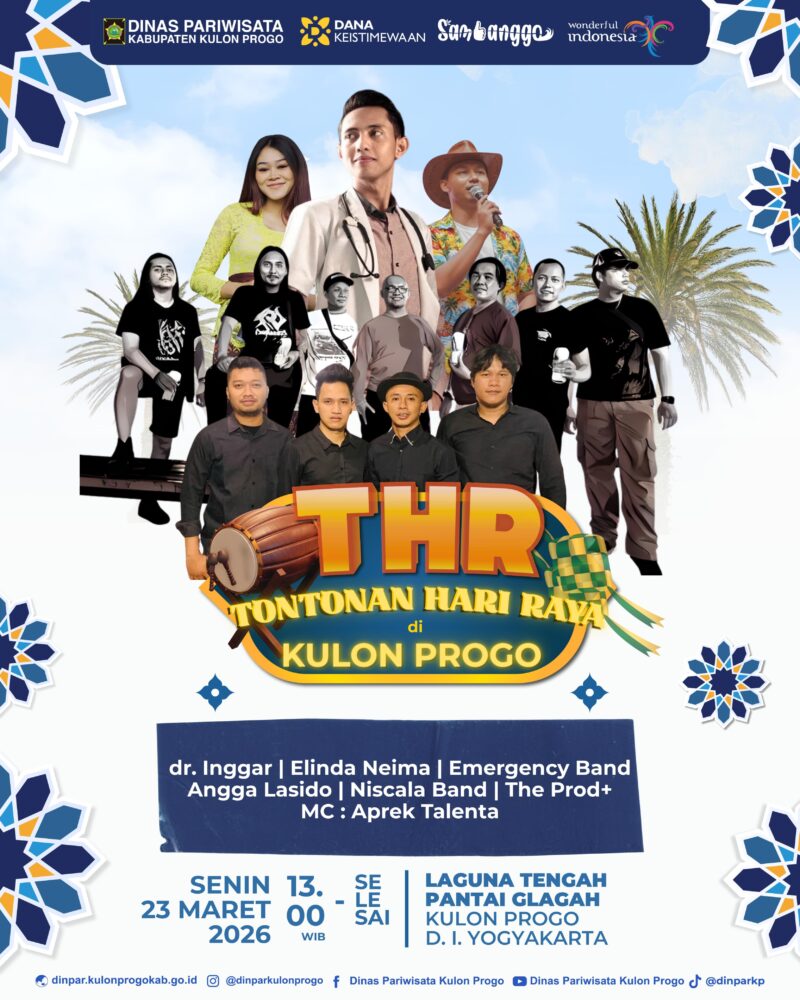 KULON PROGO, opinijogja – Dinas Pariwisata Kabupaten Kulon Progo menghadirkan Tontonan Hari Raya (THR) berupa hiburan rakyat untuk memeriahkan libur Lebaran 1447 Hijriah.