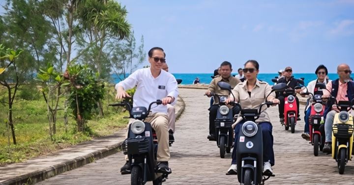Foto: Wakil Menteri Pariwisata Ni Luh Puspa beserta jajaran meninjau kesiapan destinasi Tanjung Lesung Beach Hotel dan Pantai Pasir Putih Carita menjelang libur Natal dan Tahun Baru 2026, Banten, Rabu (24/12/2025).