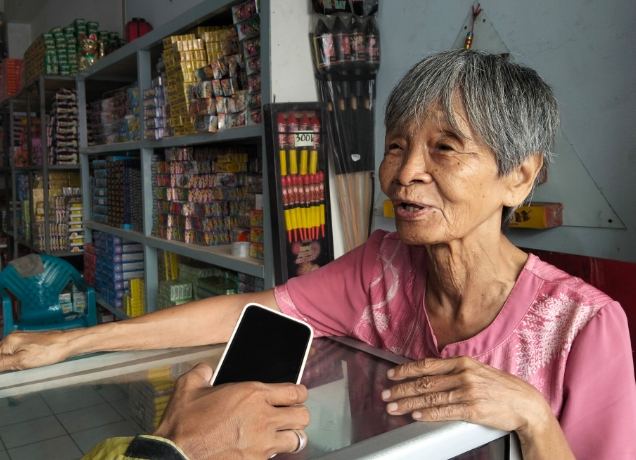 Foto: Ibu Ayem, pedagang kembang api legendaris di Yogyakarta, saat ditemui di toko miliknya, Senin (16/02/2025). Sejak 1968, Bu Ayem tak hanya menjaga tradisi perayaan Tionghoa lewat kembang api, tetapi juga memberdayakan warga dengan filosofi “kasih pancing, bukan ikan”, di tengah lesunya kondisi ekonomi. (Foto:opinijogja).