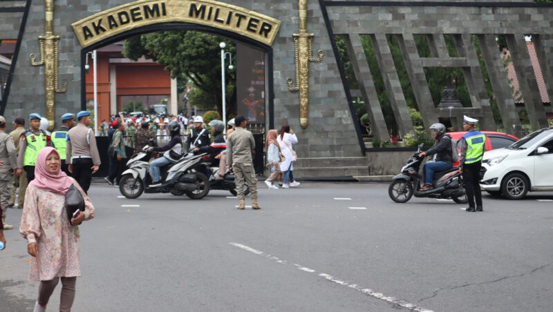 Polres Magelang Kota menerjunkan 174 personel untuk mendukung pengamanan, mulai dari jalur menuju Akmil hingga titik-titik rawan kepadatan. Sementara itu, Dishub memasang rambu portabel dan memberikan arahan langsung kepada pengendara, sedangkan Satpol PP menjaga ketertiban di sekitar area kegiatan.