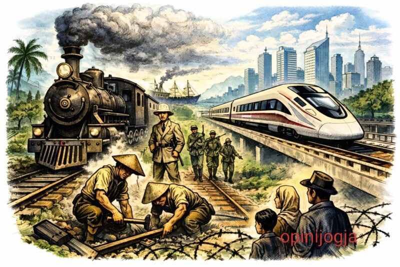 Klaten, opinijogja – Rel kereta api di Pulau Jawa kerap dirayakan sebagai penanda kemajuan. Stasiun-stasiun tua dipoles menjadi ruang nostalgia, jalur ganda dipuji sebagai solusi kemacetan, dan kereta cepat dielu-elukan sebagai lompatan peradaban. Namun sejarah rel di Jawa menyimpan kenyataan yang lebih getir: ia lahir bukan dari cita-cita mobilitas rakyat, melainkan dari kebutuhan kolonialisme untuk mempercepat penghisapan.