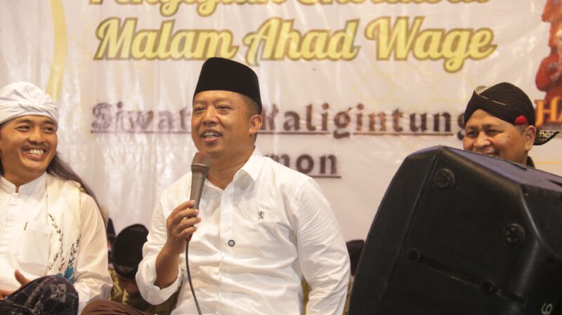 Foto: Wakil Bupati Kulon Progo, H. Ambar Purwoko, menyampaikan sambutan saat Pengajian Sholawatan Malam Ahad Wage di Musholla Mathla’ul Ummah, Padukuhan Siwates, Kalurahan Kaligintung, Kapanewon Temon, Kulon Progo, Sabtu malam (31/1/2026). Kegiatan tersebut menjadi ruang ibadah sekaligus perekat kebersamaan warga.