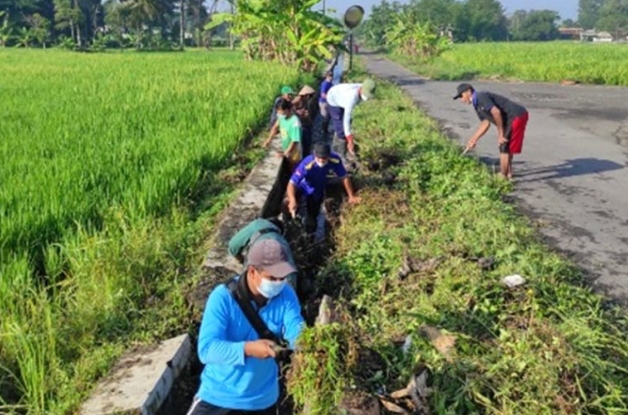 Foto: Kegiatan Gerakan Irigasi Bersih Sleman membersihkan saluran air untuk menjaga distribusi air ke sawah.