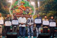 Foto: Penyerahan simbolis bantuan prasarana pertanian kepada perwakilan kelompok tani dalam Festival Hasil Pertanian Unggulan Perbukitan Menoreh 2026 di Lapangan Pendem, Kulon Progo, Sabtu…