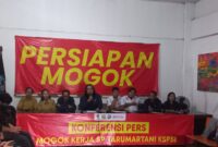 Foto: DPD KSPSI DIY bersama PUK F SB NIBA–SPSI PT Taru Martani menggelar konferensi pers terkait rencana mogok kerja di Kantor DPD KSPSI DIY,…