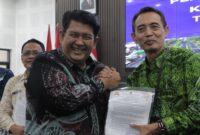 Foto: Bupati Kulon Progo Agung Setyawan menyerahkan dokumen penilaian kinerja dalam Rakordal Triwulan IV Tahun Anggaran 2025 di Aula Adikarta, Kulon Progo, Jumat (30/1/2026)….