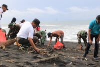 Foto: Bupati Kulon Progo R. Agung Setyawan bersama TNI, Polri, relawan, dan warga melakukan aksi bersih pantai dalam Gerakan Kulon Progo ASRI di Pantai…