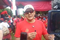 Foto: Ketua DPC PDI Perjuangan Sleman, Danang Maharsa, memberi keterangan kepada wartawan di sela peringatan HUT ke-53 PDI Perjuangan di Lapangan Pemda Sleman, Minggu…