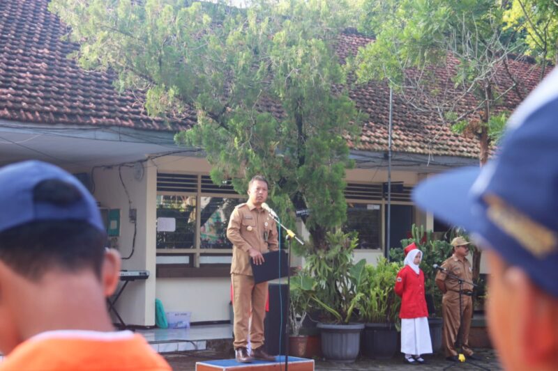KULON PROGO, opinijogja – Wakil Bupati Kulon Progo H Ambar Purwoko memimpin upacara bendera di SMP Negeri 5 Wates, Senin (19/1/2026). Kegiatan tersebut dirangkai dengan ikrar deklarasi anti judi online (judol) dan anti radikalisme bagi pelajar.