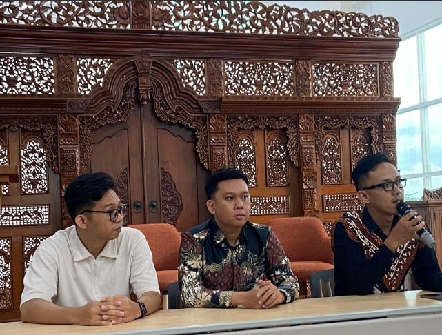 Foto: Kuasa hukum Yayasan Taman Cipta Karya Nusantara (TCKN), Riandy Aryani (kanan), menyampaikan keterangan pers terkait bantahan tuduhan commitment fee dan sengketa pembangunan Gedung Hanoman yang kini bergulir di Pengadilan Negeri Sleman, Selasa (3/2/2026).
